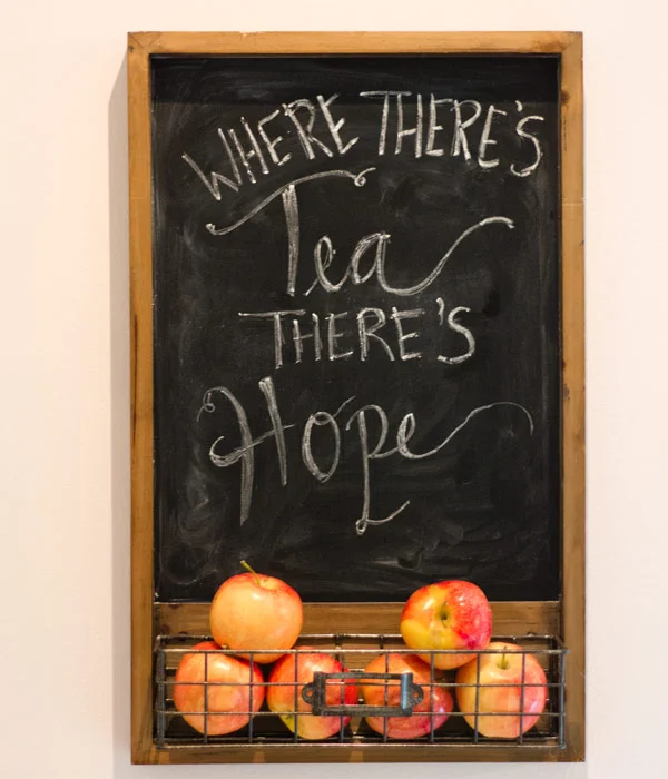// a chalkboard and basket - I need one of those fancy chalk pens...immediately. And a steady hand.