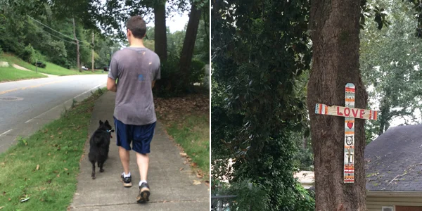 // we spent so much time out of the house this weekend, we felt we owed Chester a little fun with a run and walk combo through the neighborhood